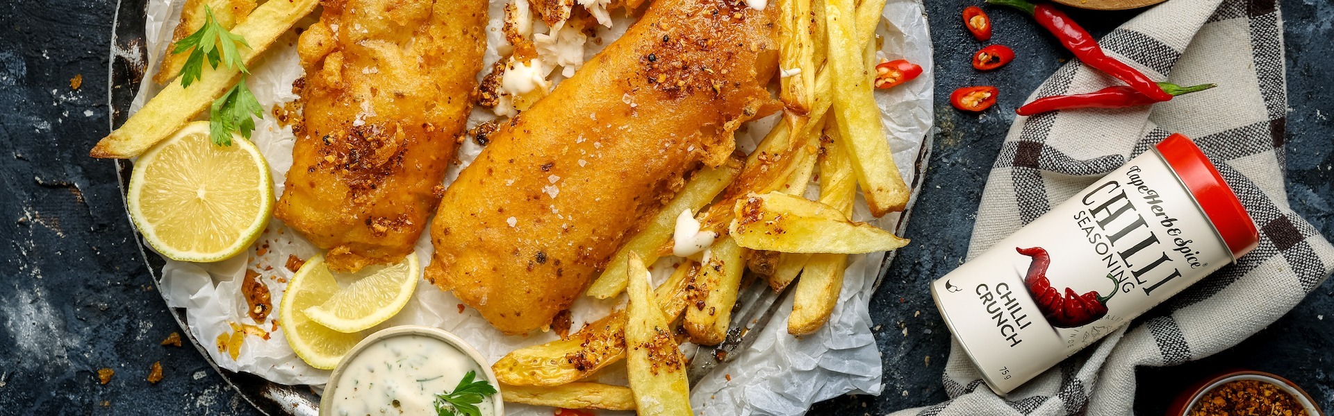 Crispy, spicy and full of flavour! Our Chilli Crunch Seasoning adds epic crunch and a fiery kick to this fried Cape Whiting, turning classic fish & chips into something unforgettable.