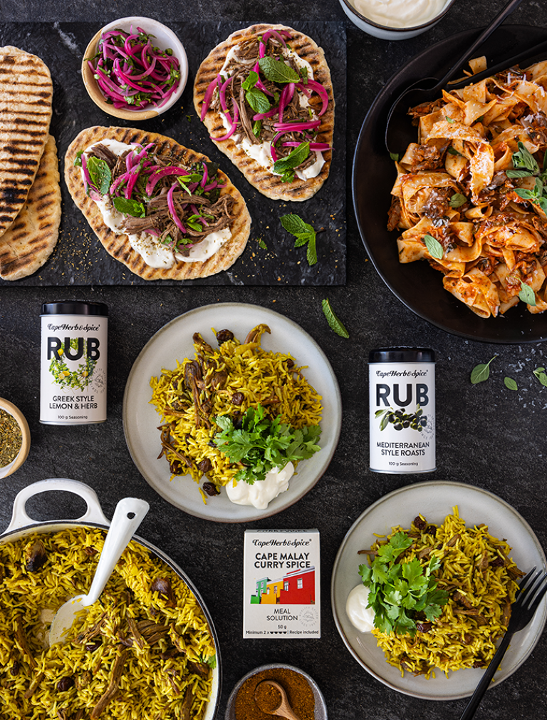 Add the shredded leftover lamb, Cape Herb & Spice Cape Malay Curry Spice and sultanas.