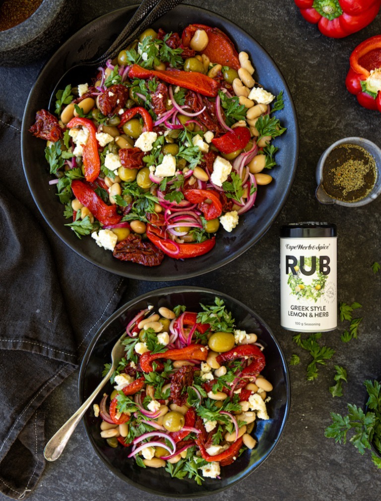 An easy to make salad, celebrating all the goodness of beans! Made even more delicious with the ever-popular Cape Herb & Spice Greek Style Lemon & Herb Seasoning.